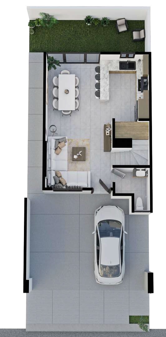 Con distribución espaciosa y sus acabados de lujo, se encuentra preparada para que tu estilo sea el que la defina. Este modelo cuenta con 2 niveles con la siguiente distribución: